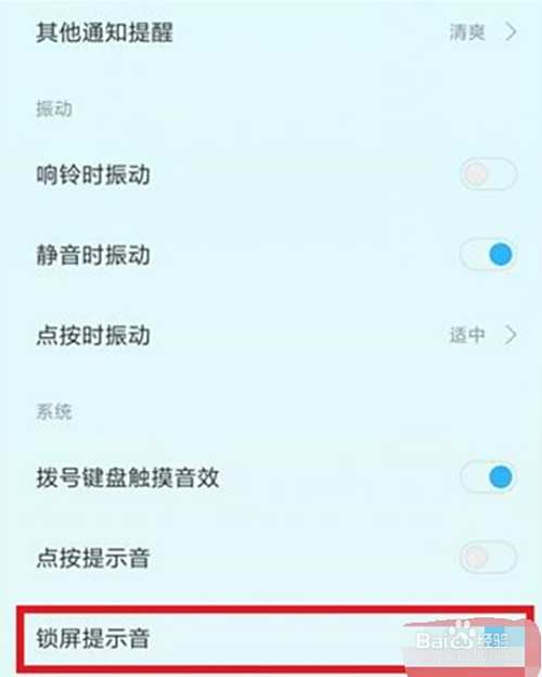 3、找到【锁屏提示音】选项,默认的是打开的,点击后方的开关按钮关闭即可。