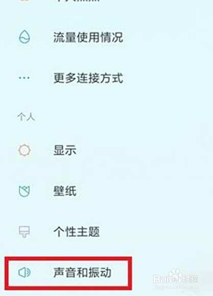 2、进入到设置功能界面后下拉界面,在个人选项的下方找到【声音和振动选项】并点击打开。