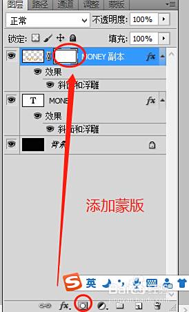 然后对文字图层副本添加蒙版,选择渐变工具,选择前景色到透明渐变,按住SHIFT,从下往上拉,得到如下效果。