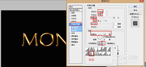 光泽等高线右边小三角点击,出现下拉框预设选项,选择环形