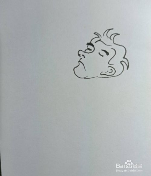 用曲线和弧线画出一个男人的头部轮廓,并画出他的五官和头发。