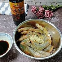 海白虾去头部的虾枪,剪去虾脚和虾尾,去除虾线,用腌制调料腌一小时