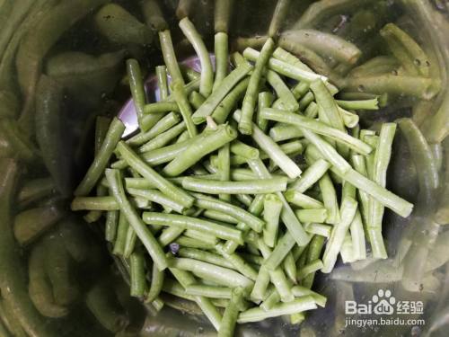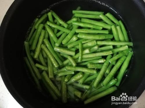 4:炒肉的时候另起一锅烧水,豇豆焯水