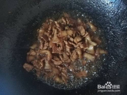 加点黄酒和生抽大火翻炒,然后把猪肉盛出来