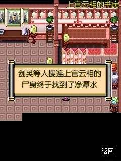 女主人公杨雪病危,毕妍说镇里来了个怪医,于是向剑英去寻找,怪医躲在东北的一颗树下,对话后说要一坛酒,现在回客栈买,巧得是卖完了,不过得到后续任务消灭野狗。 到蠡滨县南消灭10只野狗回来得到一坛酒,怪医答应看病,诊断后得知是中了七日绝命散,需要净潭水,圣言果,神仙石才能治好,怪医又说了三样东西的所在,于是向剑英和毕妍出发去寻找。蠡滨县南>桃源村西>桃源村,和村长对话接到任务消灭山贼,一直往北走来到黑风寨,发现一伙山贼。 打败山贼回去得到裂地剑,这时就可以出发到飞云庄了,桃源村东>飞云庄外>飞云庄,在门外遇到第三个伙伴秦璐,现在到庄内后院上官云相的书房触发剧情,打败上官云相得到净潭水和撼天剑。
