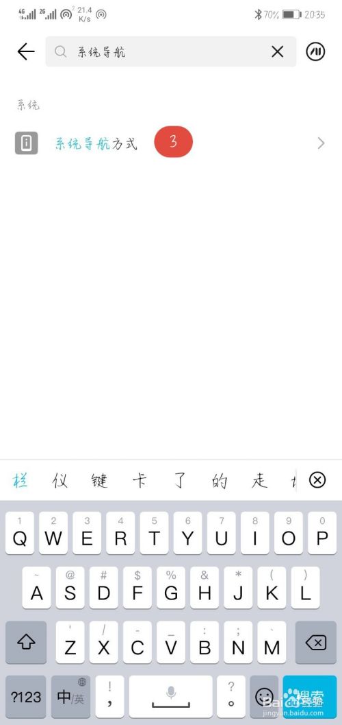 也可以在设置的上方搜索栏中,输入系统导航方式,点击搜索,出来搜索结果后直接点击打开,然后进行下一步操作。