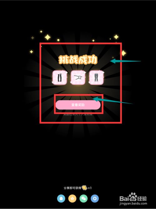 系统提示挑战成功,此时点击下方的查看奖励粉色图标,即可领取获得的素材。