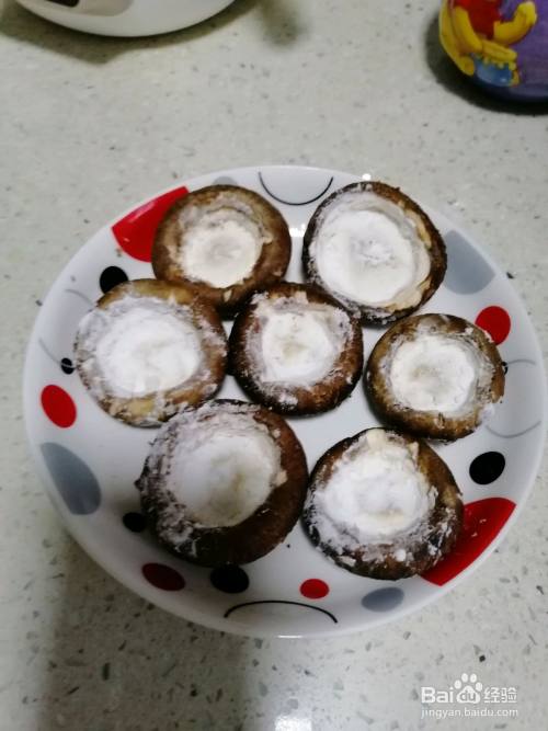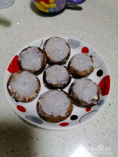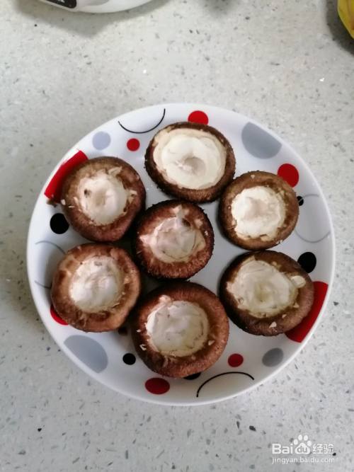 把搅拌好的虾滑装入香菇底部抹均匀备用