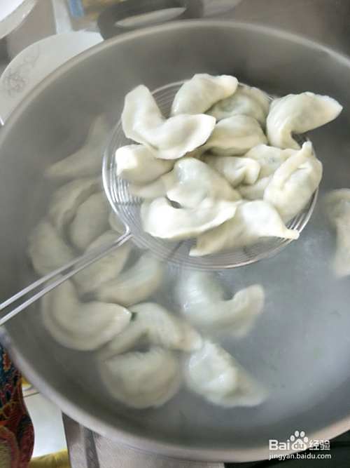 开水下锅煮饺子,开锅后放一大汤勺凉水,再开锅就熟了。出锅~