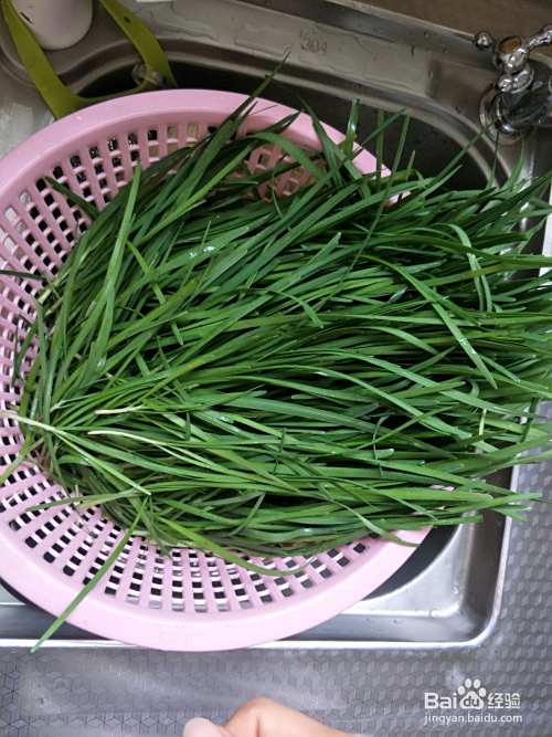 韭菜是中午现割的,味浓菜鲜,洗好竖着散开凉干。