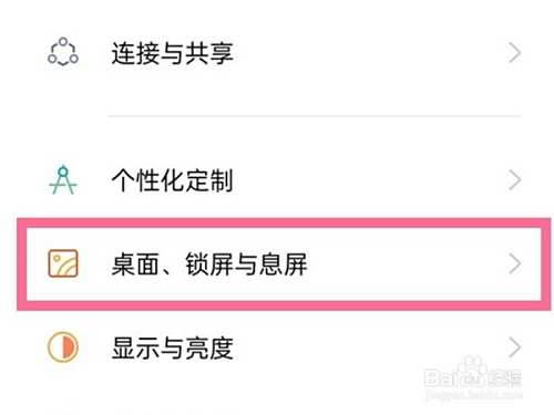 1、打开手机设置,点击【桌面、锁屏与息屏】选项。