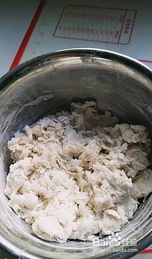 把300克面粉放进盆里,加入酵母用水搅成絮状;