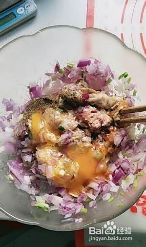 期间,来调馅料,肉沫里面加入所有佐料,搅拌均匀;