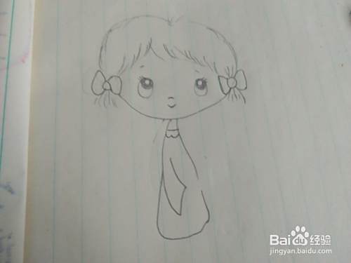 接下来我们再把女孩萌萌的大眼睛画上,再把女孩的身子形态表现出来。