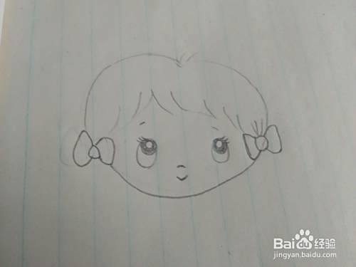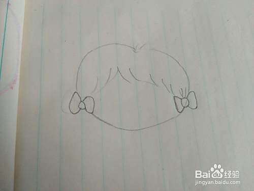 然后我们把它画上细碎的头发和两侧的蝴蝶结,如图所示。