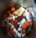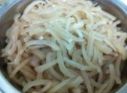 猪皮切块开水微煮,煮久了肉皮上的脂肪不好收拾,煮好后将残余脂肪刮掉!