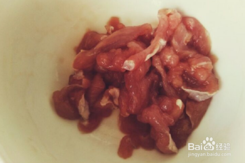 瘦肉切丝,加入料酒、生抽、盐腌制,青椒切丝、红萝卜切丝、豆角泡发洗净切段,生姜、蒜切片,辣椒切段。