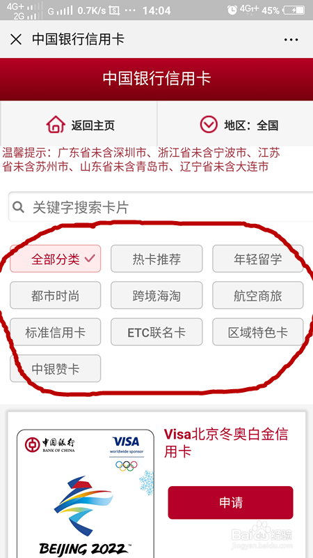 到时候我们进入办卡的界面,首先就是选取办卡的种类,要看清哦,有的可能没有年费,看个人吧,反正我不是常用,办的都是没有年费的信用卡。
