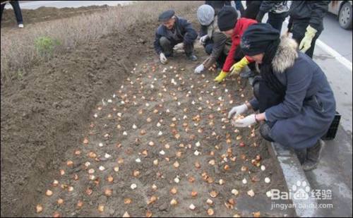 种下球根后,将泥土覆盖表层铺平,施肥,浇上充足的水分,就大功造成了