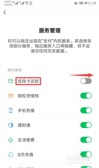 滑动完成后如图所示,这样便开启了信用卡还款支付。