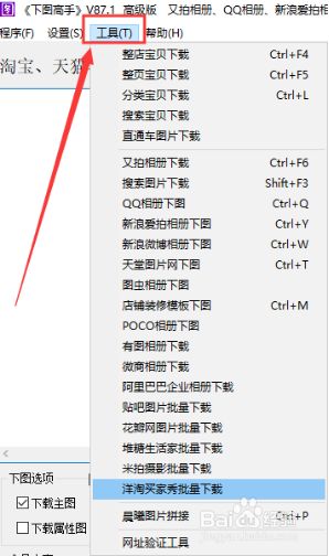6.选择“洋淘买家秀批量下载”这个功能,弹出相应的对话框,如图: