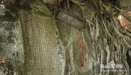青源山的雕刻,也是非常有特色的。石壁上经常能看到红色的字,以及破旧的雕像,旁边含有枯藤这种景象,也是很少见的。