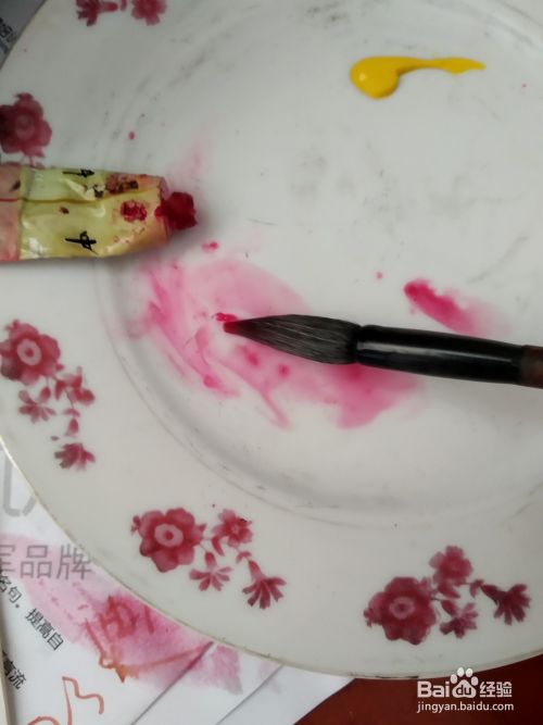 首先准备一个干净的盘子,调一些藤黄,曙红的颜料。
