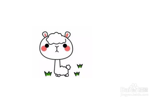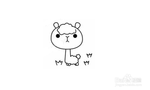 第五步,然后在羊驼的周围画几棵小草,因为羊驼喜欢吃草,