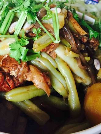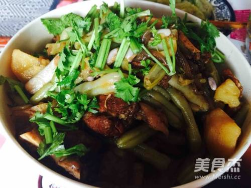 煮好的排骨捡出来与芸豆一起再煮