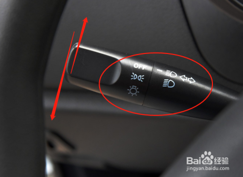 1、进入车内找到车辆的灯光控制杆。