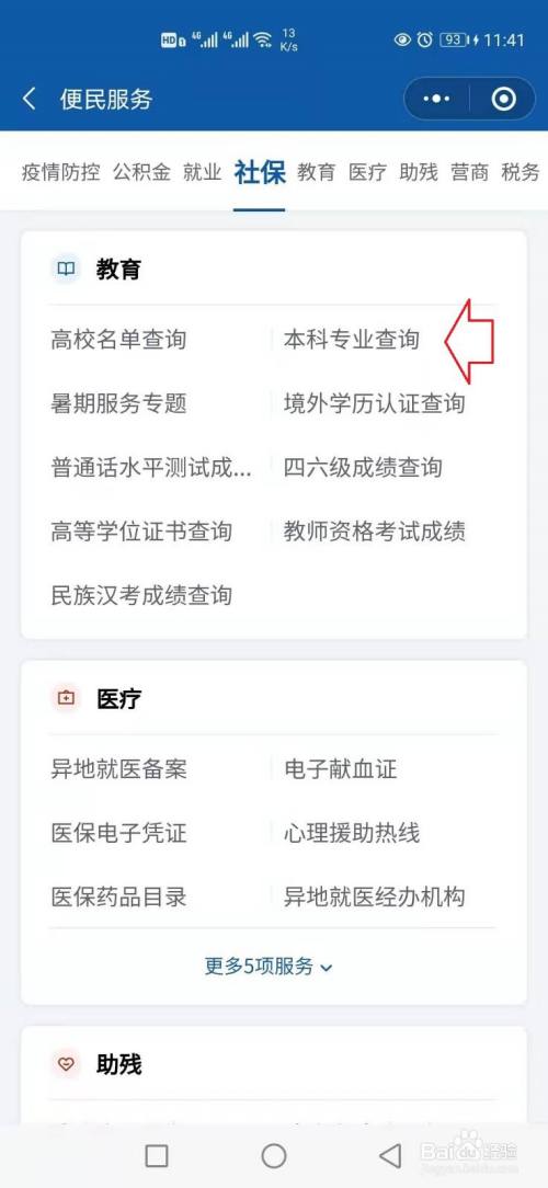 然后点击选择【本科专业查询】,滑动查看更多信息。