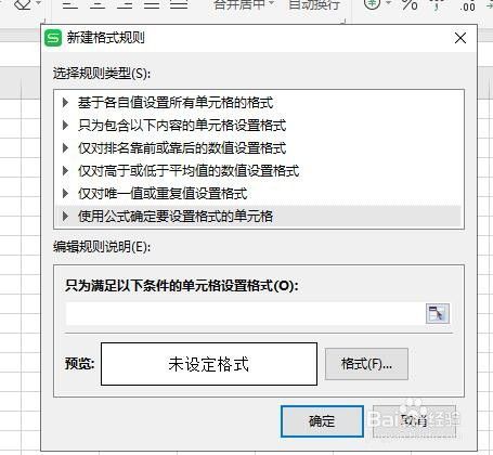 点击条件格式,选中新建规则,在弹出的对话框中找到使用公式确定要设置格式的单元格。