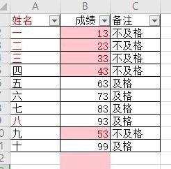 在编辑框中输入公式,=$C2="不及格",注意引号要用英文格式,同时行的$标号要去掉。