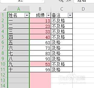 找到需要编辑的数据列,选中,如下图所示,选中姓名数据列。