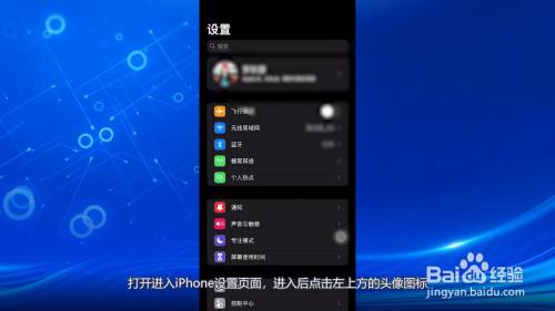 打开进入iPhone设置页面,进入后点击左上方的头像图标。