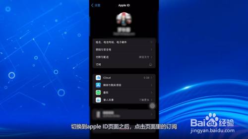 切换到apple ID页面之后,点击页面里的订阅,进入下一个新的页面。