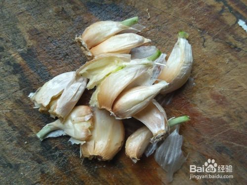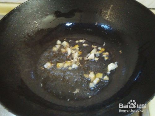 开火,锅里放入20g油、取适量蒜头煎一会儿。