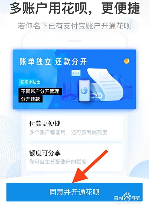 在另外一个主账号里面会显示:你的另外一个支付宝账户已开通花呗。