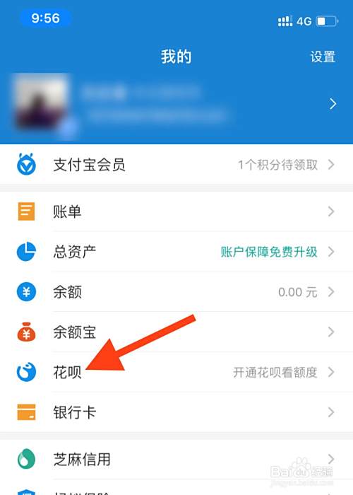 打开身份证注册的另外一个支付宝账号,点击“花呗”。