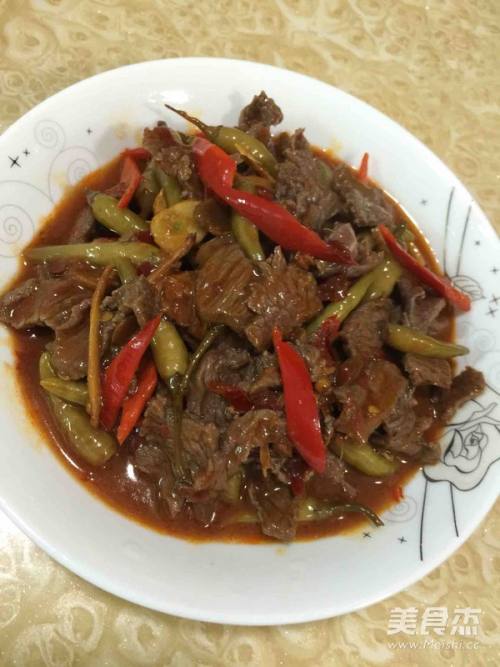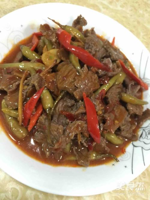 9炒至牛肉熟透,辣椒断生即可出锅。