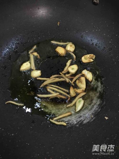 3锅里加入少量油,姜蒜入锅煸炒出香味。