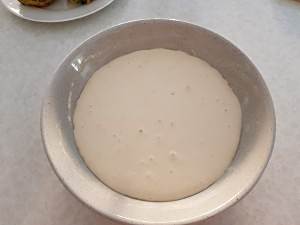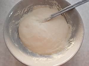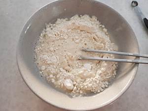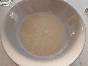 搞拌均匀后盖上保鲜膜,发酵30-40分钟成两倍大。
