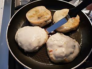 然后就是小火煎,一面金黄后,小心翻另一面煎。