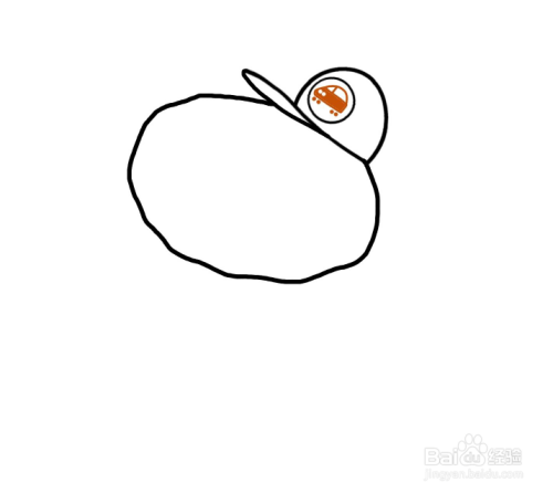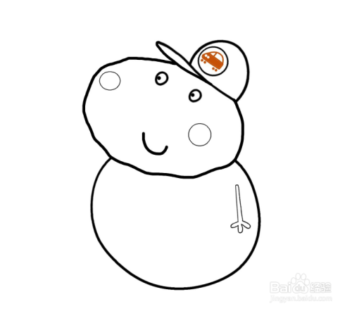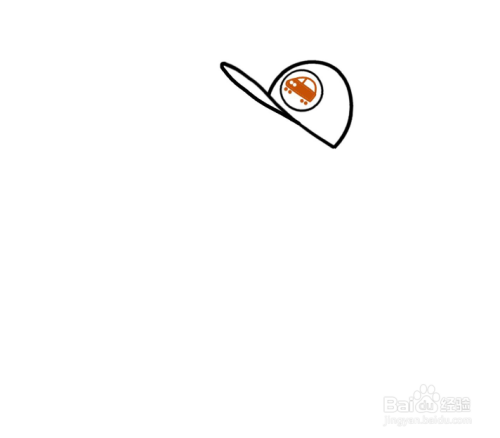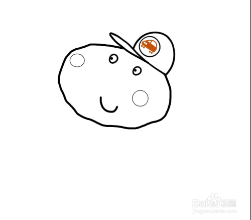 如图,先画出狗爷爷的帽子轮廓,用彩笔画出帽子的图案。