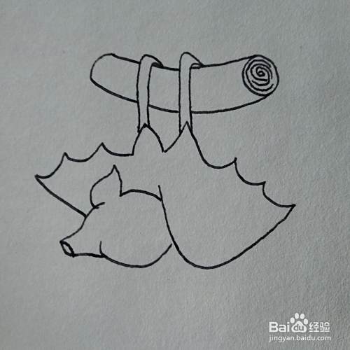 然后画出蝙蝠脚抓着的木头棍子
