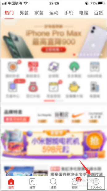 点击主页右下角的“个人中心”,进入个人活动中心页面。