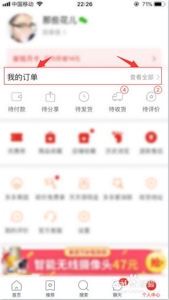 3、点击图示处的“我的订单”,这里有历史上交易成功与未成功的所有订单信息,点击“查看全部”。