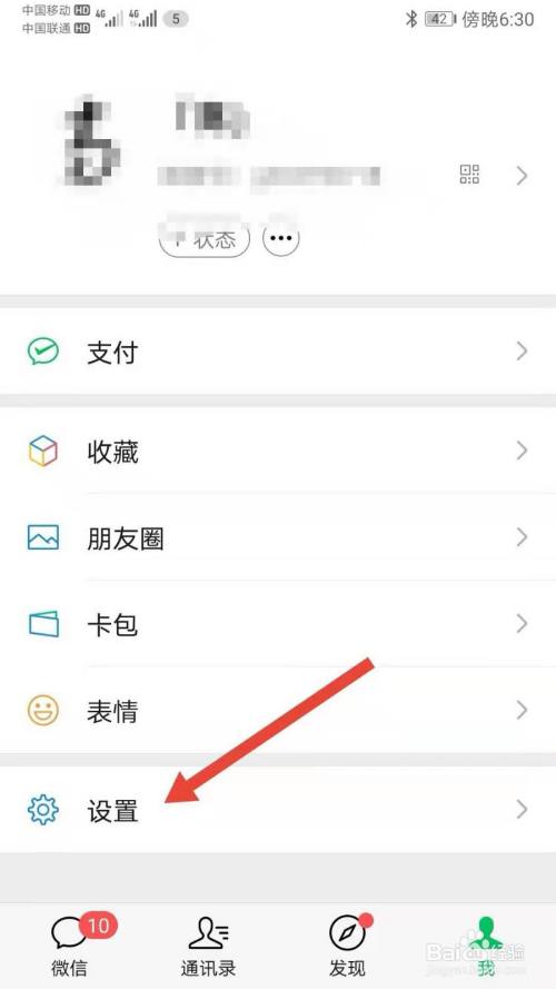 进入后,可以看到许多选项,有支付、收藏等,选择点击设置,进入微信的设置界面