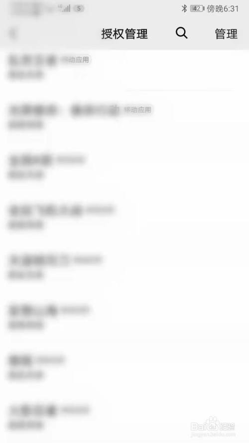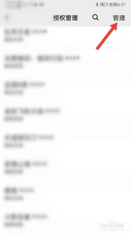 那么如何管理这些应用,解除授权管理呢?点击屏幕右上角的管理按钮,如图所示