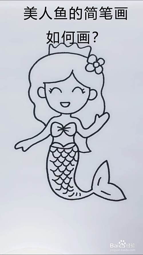 最后画出美人鱼身躯上的鱼鳞,如下图所示。这样美人鱼的简笔画就完成了。